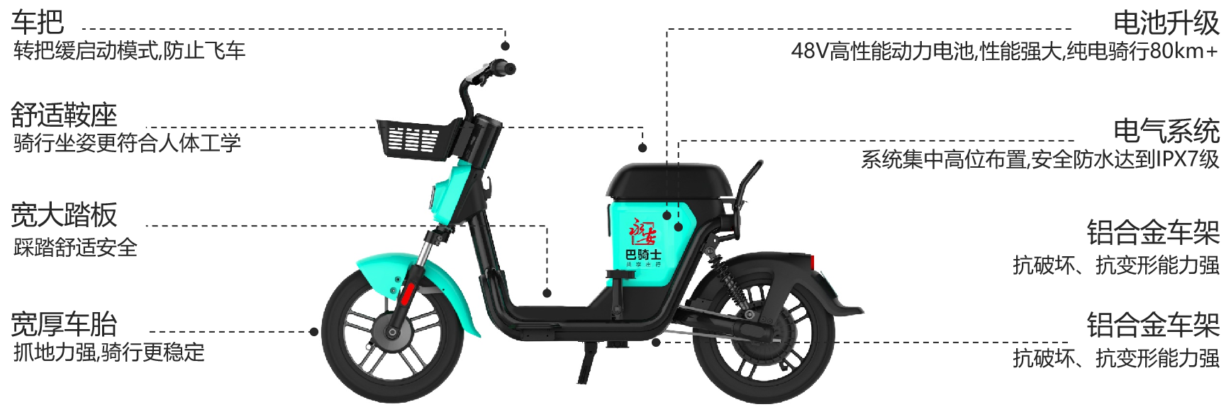 最新推出的车型相较于以往车型骑行更加安全、续航里程更加持久,电骑行续航超过80公里,有效降低充电和转运频次,提高骑行体验和运维效率